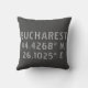 Lancer l'oreiller caractéristiques Bucarest Roumanie latitude et longitude coordonnées carte dans la police urbaine moderne sur gris foncé arrière - plan