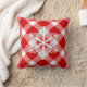 Jetez l'oreiller dans un grand motif en plaid de buffle rouge et blanc profond, avec un grand flocon blanc à l'avant - à l'envers en plaid massif