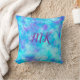 Monogrammed Bleu et pourpre bokeh bulles coussin.