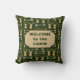 Ce coussin motif séduisant est parfait pour un cabine ou une salle de loisirs. Il présente un motif de silhouettes de tête de cerf en or clair et des flèches blanches sur un arrière - plan de vert foncé de forêt. Un côté a un étiquette correspondant au centre avec votre texte personnalisé, également en vert foncé forêt. Actuellement il dit "BIENVENUE au CABINE" mais vous pouvez facilement customiser à votre propre texte. L'autre côté a le cerf et la flèche motif sans le étiquette ou le texte.