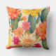 Ce coussin est animé d'inspiration désertique avec des cactus fleuris dans les tons verts, accentués par de grandes fleurs en orange vif, jaune, rose et corail. L'arrière - plan crème chaleureux améliore les couleurs vives, ce qui en fait un parfait énoncé pour ajouter un southwestern ou botanique gai à n'importe quel espace.