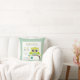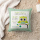 Oreiller de décoration moderne et mignon pour la nurserie de bébé avec une chouette verte bleue assise sur une branche avec les informations de naissance : prénom, nom de famille, poids, heure, date et taille. Facile à éditer et à personnaliser. Idéal comme cadeau pour nouveau-né ou pour une baby shower !