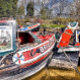 Un design artistique de vieux bateaux à étroit amarrés sur le canal en attente de restauration.