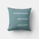 Ce carré simple et minimaliste jette l'oreiller, avec la place pour trois noms, est un cadeau merveilleux pour une nouvelle maison ou une fête de ménage - ou pour vous-même, bien sûr ! Grand cadeau pour les nouveaux parents ou grands-parents. Il est bleu et blanc pâle poussiéreux, mais facile à changer de couleurs. Le dos est bleu. Tous droits réservés © 2024 Alan & Marcia Socolik