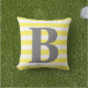 CLIQUEZ SUR PERSONNALISER L'OPTION MODÈLE ET ENTREZ MONOGRAM LETTERCarrière - plan jaune personnalisable avec bandes blanches des deux côtés du coussin. Gros monogramme initial en gris centré sur le devant.