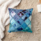 Ce coussin de Mojo d'Américain a une caisse 100% lavable de tirette de coton et a une conception de l'eau, de verre, de mosaïque, de bleus d'océan profond, d'ombres tropicales d'île, et de signes subtils des colombes. Aigue-marine renversante, turquoise, marine et conception numérique pourpre.