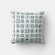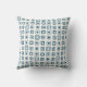 Carrés bleus modernes du milieu du siècle à l'intérieur des carrés argentés. Les carrés sont un peu plus grands d'un côté du coussin que de l'autre pour un oreiller à lancer unique. L'argent et le bleu des carrés travailleront avec de nombreux styles de design, pas seulement moderne du milieu du siècle ou rétro.