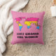 Personnalisable lancer l'oreiller avec la carte du monde dans la couleur du drapeau de la fierté de pansexualité, un design sur un arrière - plan rose; le texte "Changeons le monde" est un texte modèle et peut être changé.