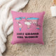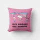 Personnalisable lancer l'oreiller avec la carte du monde dans la couleur du drapeau de la fierté transgenre, un design sur un arrière - plan rose; le texte "Changeons le monde" est un texte modèle et peut être changé.