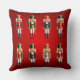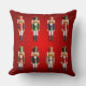 Ce coussin rouge de fête décoré de chaque côté avec deux rangées des soldats de jouet à noix de casse-noix dans des uniformes colorés de hussard est l'accent idéal qui animera n'importe quelle pièce pendant la saison des vacances. Il fait également un cadeau parfait de Noël pour la famille et les amis.
