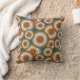 Cet oreiller à jetons présente un motif géométrique de cercles concentriques superposés en rouille, bronze et crème sur un arrière - plan turquoise pour un look moderne et contemporain.