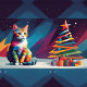 Chat coloré Arbre de Noël Arrière - plan Abstrait Jeu d'oreiller