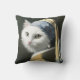 Coussin Chat blanc avec une perle à oreille peinture