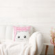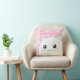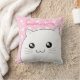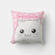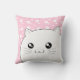 Un chat potelé de minou de kawaii de style très mignon de chibi sur l'arrière - plan rose des étoiles de blanc et de mini chats, sur un coussin carré, avec la capacité d'ajouter votre nom votre nom d'un côté.