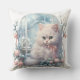 Je suis sûr que nous connaissons tous un amoureux des chats, moi y compris. Cet adorable coussin a un chaton blanc mignon habillé d'un arc rose entouré de décorations roses et bleues.