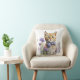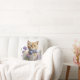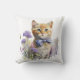 Un coussin doux à l'accent, avec aquarelle d'un chaton à table orange, avec une cravate arc violet et assis dans un lit ou des fleurs violettes. Belle idée cadeau pour n'importe quel amoureux des chats.