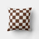 Un oreiller jeté conçu avec un motif à damiers marron et blanc. Customisez la couleur marron, la taille motif entre autres options.