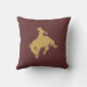 Ce coussin présente ce que tout le monde connaît du Wyoming. Les chevaux et les cowboys les chevauchent ! Il présente un cowboy or et une silhouette de cheval cassant sur un arrière - plan brun foncé. La même image apparaît de chaque côté du coussin. *Cette conception utilise l'image © Graphics Factory.com*
