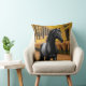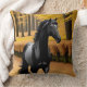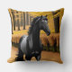 Coussin Cheval noir dans un sentier forestier Pittoresque