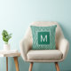 Un carré motif moderne vert pré et blanc chevron jettent l'oreiller. Rendez-le personnel en ajoutant votre initiale au carré monogrammé.
