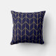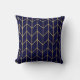 Coussin Chic moderne de bleu marine de Chevron d'or jaune