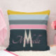 Coussin Chic monogrammed rose et bleu marine turquoise ray