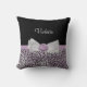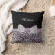 Un imprimé feminin de guépard violet lance l'oreiller avec un arc blanc à pelle girly embelli de jolies perles et un ruban de rosette au centre. N'importe quelle fille qui aime le violet et le noir aimerait que son nom soit ajouté à ce design poster de animal élégant et à la mode. Image imprimée plate, pas le ruban réel.