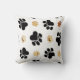 Coussin Chien canin noir et tan empreinte de patte blanc