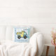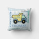 Chiffre de naissance d'un camion à benne bleue coussin avec le nom du nouveau-né, la date de naissance, la taille, le poids et l'heure de naissance.