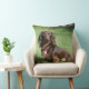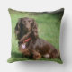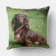Coussin Chocolat et teckel miniature aux cheveux longs