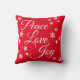 Décorez la maison avec Peace Love et Joy ce Noël avec ce classique moderne design de flocon de neige blanc lancer oreiller. PEACE LOVE JOY moderne en écriture blanche typographie avec des flocons de neige blancs et arrière - plan rouge de vacances. S'il vous plaît envoyez-moi un email si vous souhaitez apporter des changements de design designsbykatz@gmail.com Joyeux Fêtes!