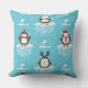 Add a splash of holiday cheer with this playful Christmas pillow featuring cartoon penguins dressed in scarves, hats, and antlers, each perched on floating icebergs. Set against a snowy blue backdrop with distant mountains, this repeating pattern brings winter whimsy to any space. Perfect for cozy seasonal decor, kids’ rooms, or as a charming holiday gift, this pillow blends fun, warmth, and festive flair.