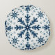 Voici un coussin rond. Il a un design motif en cristal de neige.