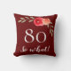 Citation drôle Aquarelle Rouge Rose 80e Anniversaire Oreiller. Coussin moderne et élégant floral 80ème anniversaire avec de beaux roses aquarelle et brindilles sur un arrière - plan rouge foncé. La citation drôle et positive 80 Donc ce qui est génial pour une personne qui célèbre 80 ans et a un sens de l'humour. Grands cadeaux de 80ème anniversaire.