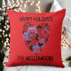 Coussin Coeur mignon Doodle de Noël rouge noir monogramme