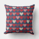 Coussin Coeurs rouge, bleu et blanc sur bleu de minuit