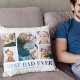 Coussin papa personnalisé avec 5 photos mignonnes de lui et des enfants, les mots "BEST DAD EVER" dans une police moderne dégradé bleu, et les noms des enfants.