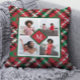 Beau coussin plaid rouge et vert de vacances dispose d'un collage de quatre photos et d'un monogramme centre. Magasinez cette collection de Noël pour coordonner les cartes de voeux et la décoration saisonnière !