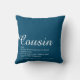Coussin Cool moderne Bleu amusant Script Cousin Définition