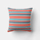 Coussin Corail vivant, bandes bleues et grises