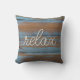 Corde "relax" texte sur motif rustique bleu et marron en bois rustique.
