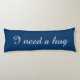 Coussin de corps de texte personnalisé | J'ai besoin d'un câlin. Couleurs bleu marine et blanc. Élégante typographie de script.