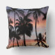 Ce coussin présente une photo de palmiers tropicaux avec un coucher de soleil rose onirique en arrière - plan, parfait pour un amoureux de la nature ou une maison de vacances tropicale !