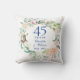 Caractérisé par une délicate guirlande florale aquarelle, ce chic oreiller botanique de 45e ou 65e anniversaire de mariage peut être personnalisé avec vos détails spéciaux d'anniversaire en typographie bleue saphir élégante et votre photo au verso. Conçu par Thisisnotme©