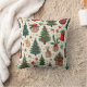 C'est un coussin conçu avec des arbres de Noël et des ornements.