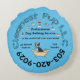 Bleu et noir, rond. Se glisse dernière le dos pour le soutenir. La qualité d'impression est excellente.