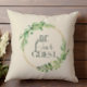 Jetez l'oreiller avec arrière - plan crème douce, élégante couronne verte et or avec les mots "Be Our Guest" à l'avant, assorti en arrière. Coordonner l'impression damas verte et crème sur le dos. Voir tous nos décors dans notre boutique Zazzle!