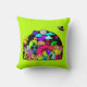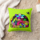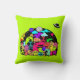 Un oreiller avec un gribouillage amusant utilisant un thème cosmique. Un rassemblement de créatures spatiales extraterrestres. Placé sur un design d'espace extra-atmosphérique. Vous pouvez voir une lune, des planètes, des vaisseaux spatiaux qui filent, des étoiles et un vaisseau extraterrestre qui atterrit. Les couleurs comprennent à la fois des néons vifs et des pastels rétro subtils. Placé sur un fond vert lime excitant.