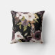 Elégant et élégant, bordeaux, marsala et feuilles verts fleuris et crème sur décorateur noir jettent un oreiller.