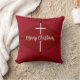 Ce magnifique coussin rouge présente une croix blanche et un accueil de Noël personnalisable.
